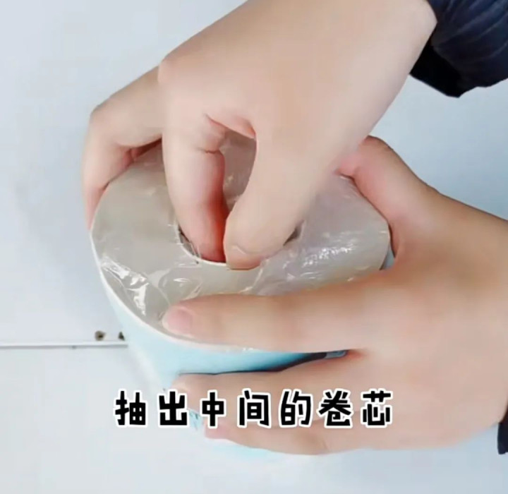 只需要把新的卷纸,使劲儿按压两遍,然后把中间的纸筒取出来即可。