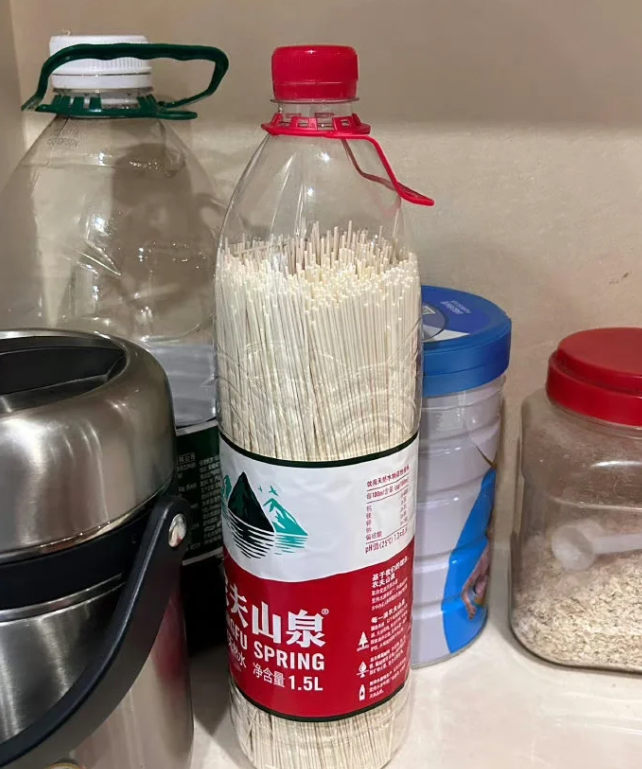 只需要把挂面放进矿泉水瓶子里面,就可以收纳挂面,而且防水、防潮,也不用担心挂面变质。