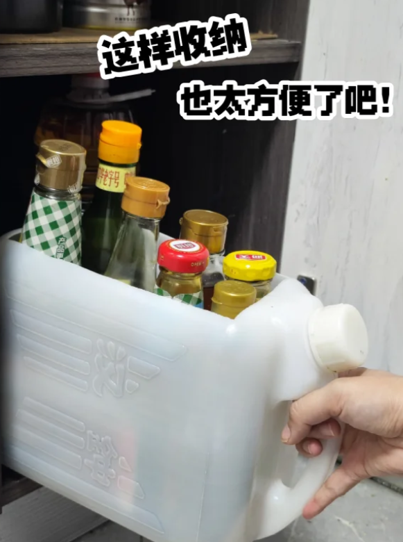 我妈把油桶简单改造一下,就变成了收纳调味料的收纳筐。